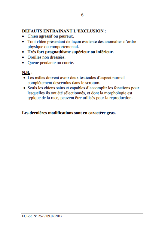Chaque race a un standard et doit être conforme à celui-ci pour être reconnue comme LOF