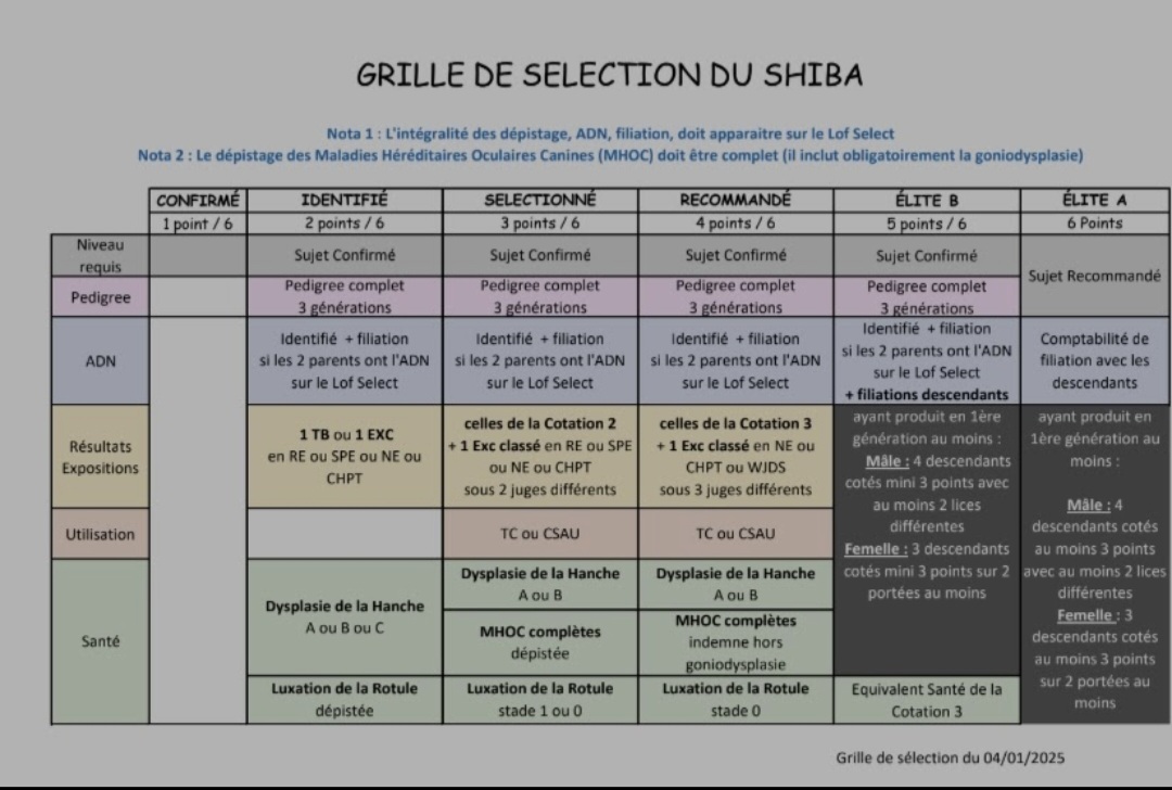 Une forme d'évaluation de 1 à 6 pour reconnaitre les reproducteurs de qualité ainsi que leurs descendants, un chien de qualité c'est :